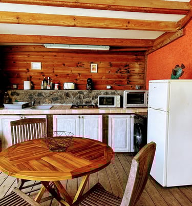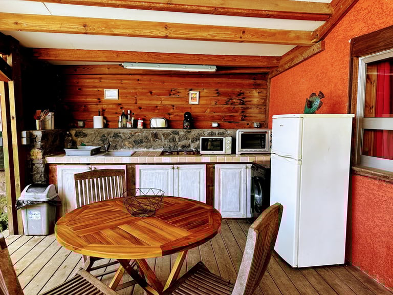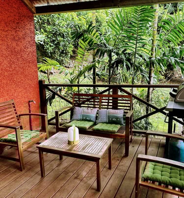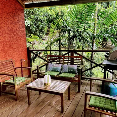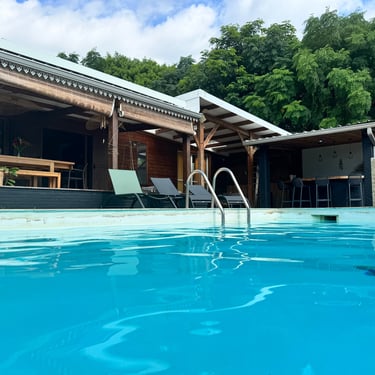 Gîte tout confort, climatisation, vous proposant un grand espace à vivre avec cuisine équipée, grande chambre lit en 160', espace de rangement, salle de bain avec douche à l'italienne, toilette, canapé lit, barbecue, varangue d'où vous pourrez profiter du jardin tropical. Une piscine au sel, commune.